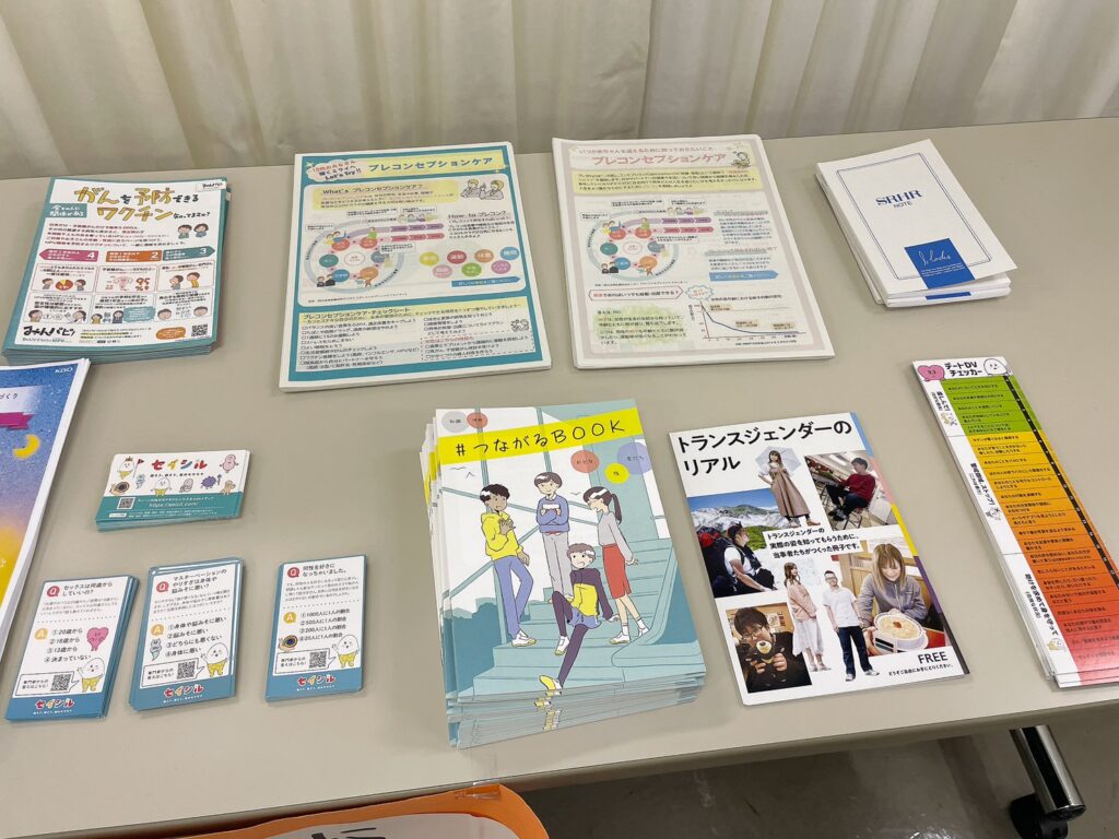 いつものように、書籍ブース、月経用品ブース、避妊具ブースを作って皆さんをお出迎え。